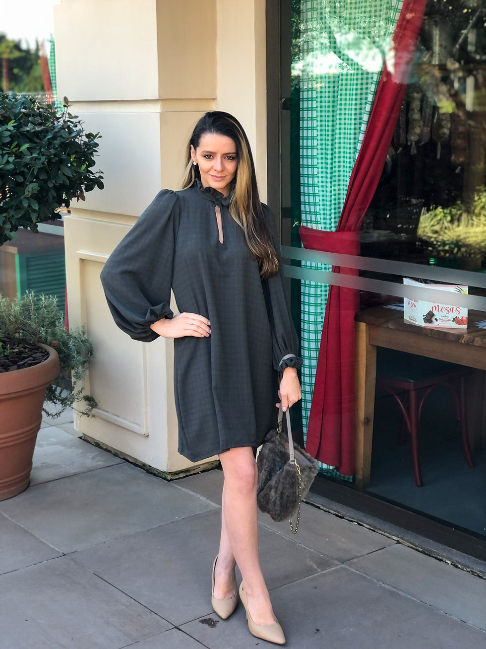 Vestido Grafite Xadrez